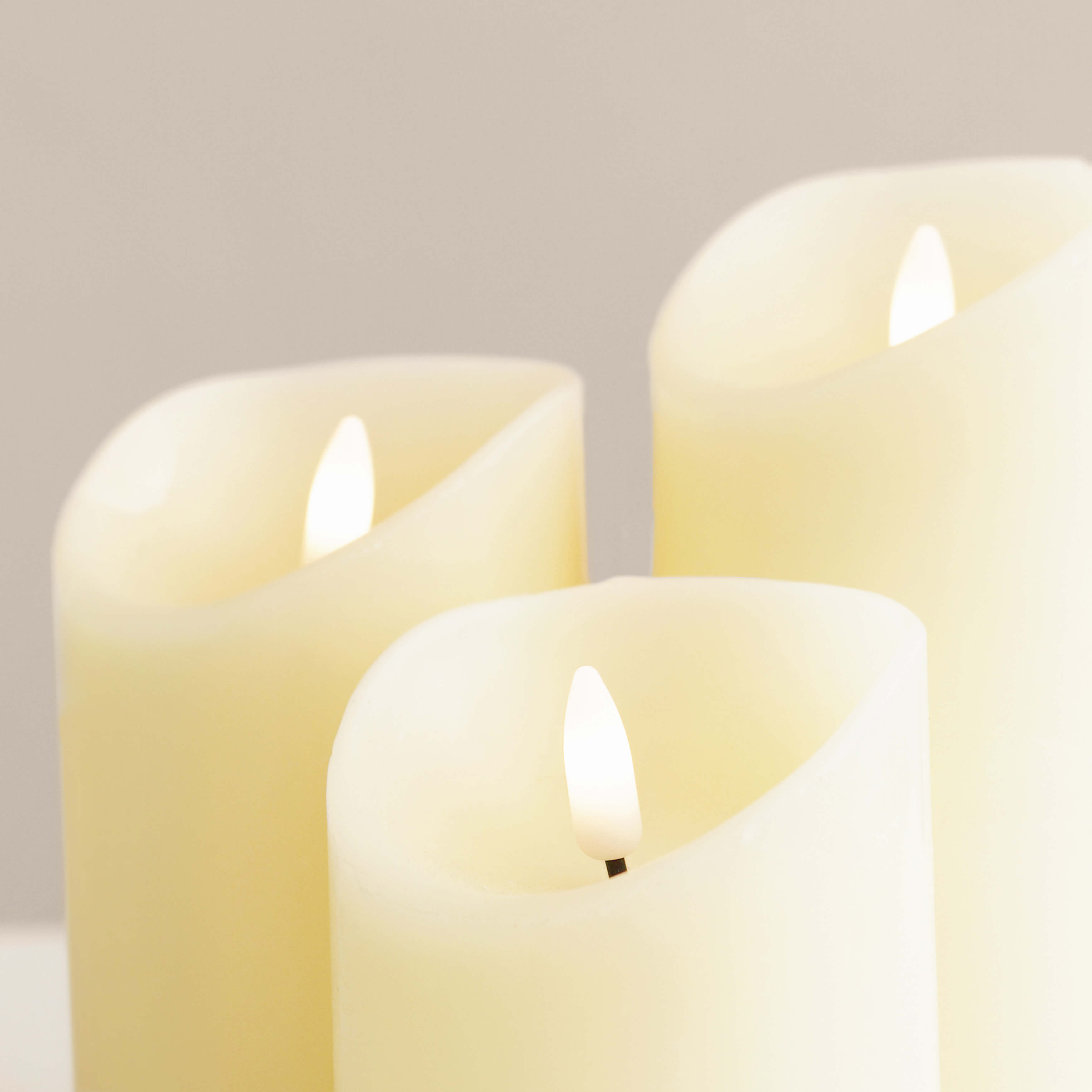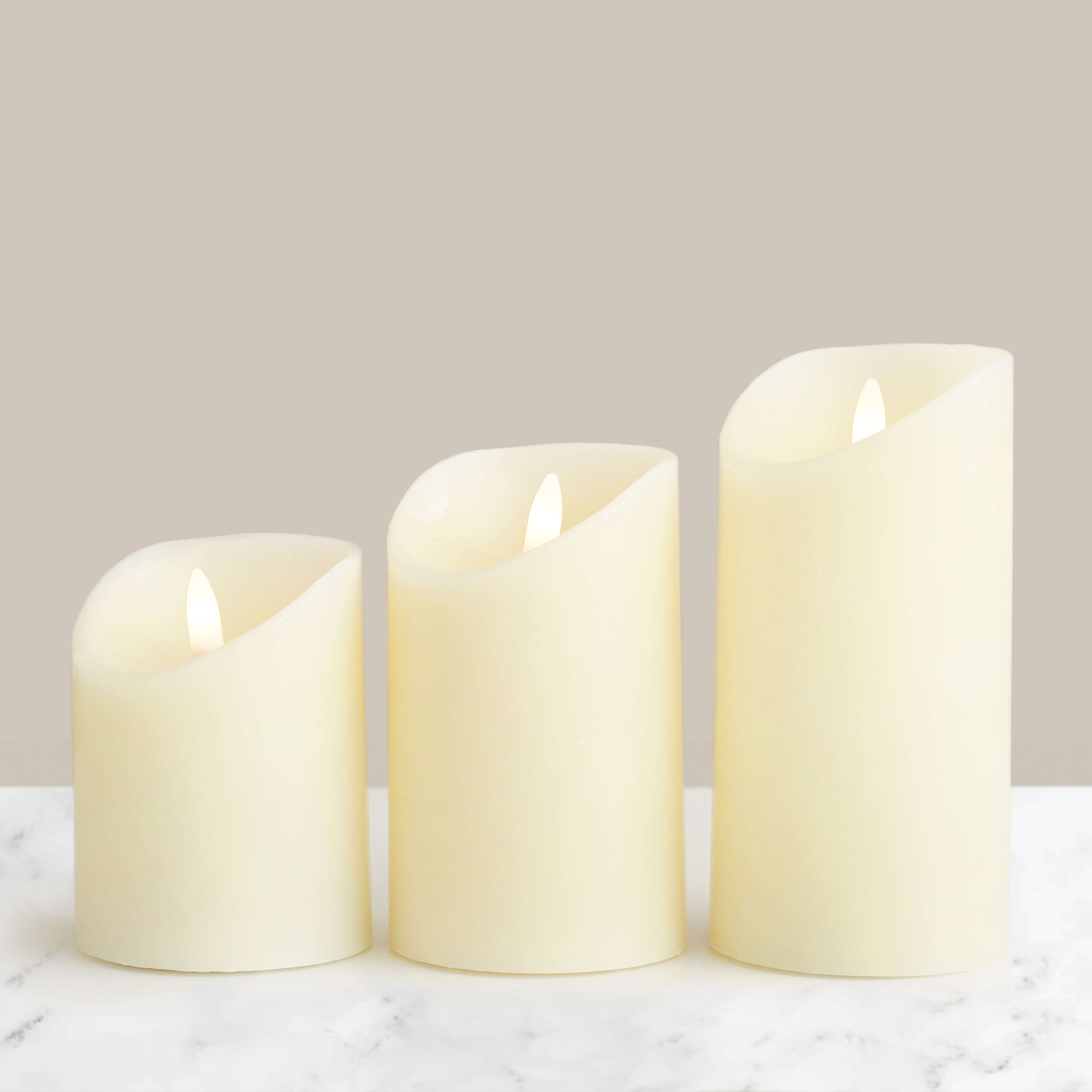 This trio of white LED candles is perfect to pair with our Silhouette Cande Holders. Made with wax and outfitted with warm LED lights, they bring a cosy glow to your space. Stays lit for 6 hours straight.